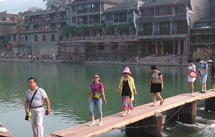2014年9月張家界旅游鳳凰古城沱江渡橋公司員工留影